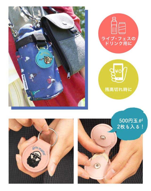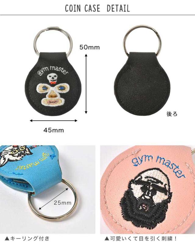 コインケース キーホルダー Airtag キーコインケース ミニ コイン キー 500円玉 保護 ホルダー ケース カバー gym master ジムマスター 革 刺繍 かわいい 個性派 個性的 小さい 小銭入れ 隠しコイン バッグチャーム エアタグ ストラップ 小銭が入る 紛失防止 アウトドア