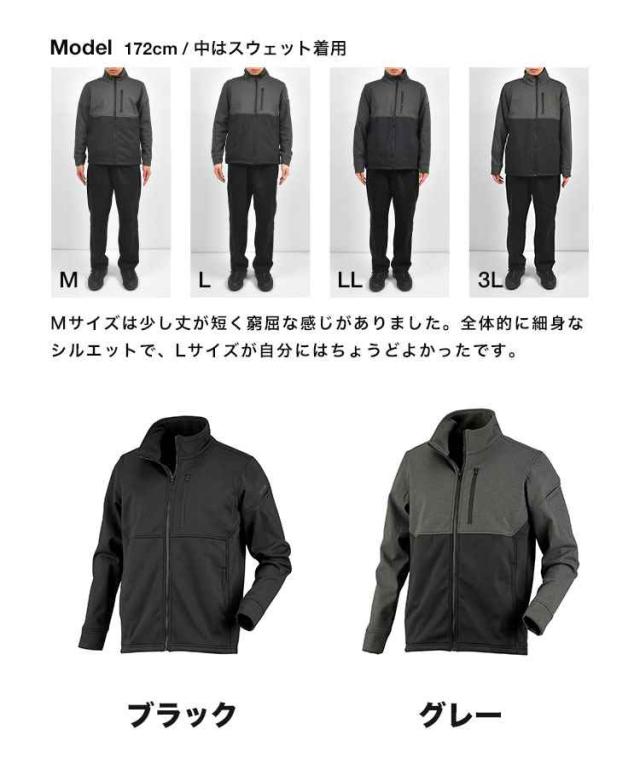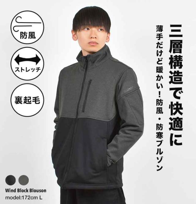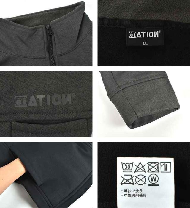 ジャンパー メンズ 秋冬 防寒 防風 薄手 カジメイク ATION 8340 M L LL 3L ブルゾン 作業着 作業服 仕事着 アウター 上着 ヤッケ ウインドブレーカー はおり ジャケット 大きいサイズ 裏起毛 暖かい 保温 薄い ストレッチ 伸びる ポケット ファスナー付き ブラック グレー