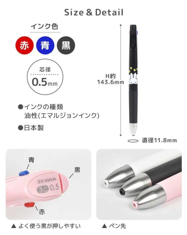 3色ボールペン ミッフィー miffy ブレン Blen 3c ゼブラ ボールペン キャラクター おしゃれ かわいい 大人 女性 三色 黒 赤 青 0.5mm 油性 筆記用具 人気 オフィス 職場 学生 高校 中学 文房具 シンプル くすみカラー 文具 日本製 ブレない ストレスフリー 書きやすい