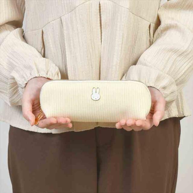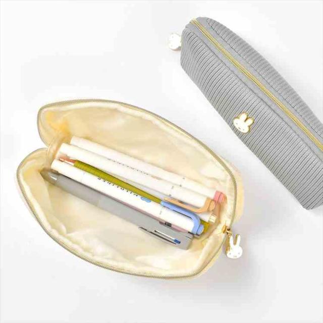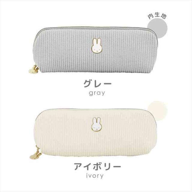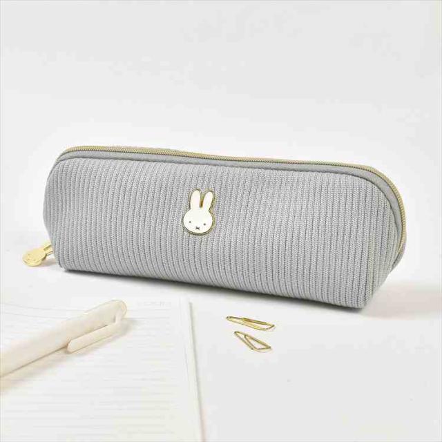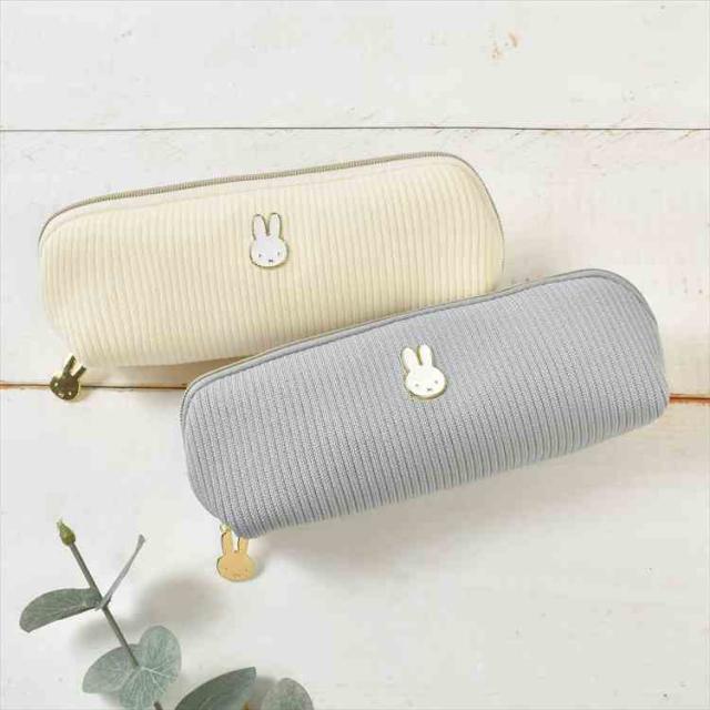 ペンケース ミッフィー miffy ペンポーチ 筆箱 キャラクター 小物入れ フェイスシリーズ EB474 スリム コンパクト おしゃれ かわいい 大人 うさぎ ニット 布 ファスナー メイクポーチ 化粧ポーチ ロングポーチ 女子 高校生 中学生 通勤 通学 文房具 雑貨 アイボリー グレー