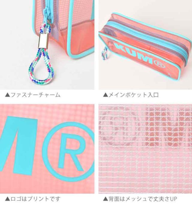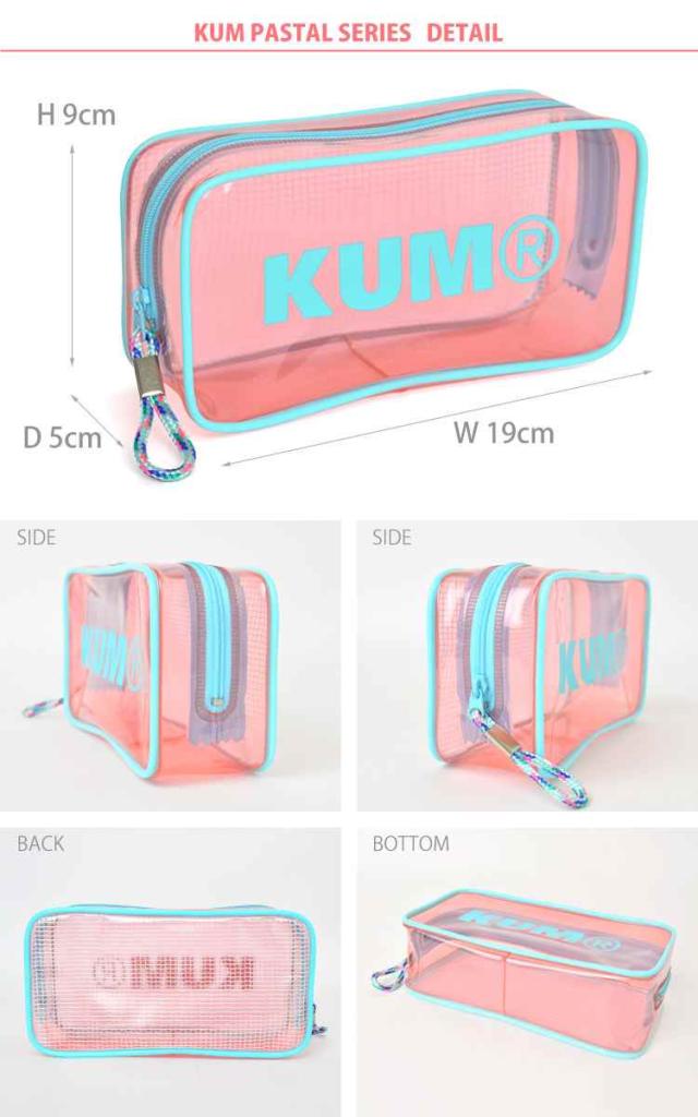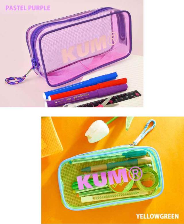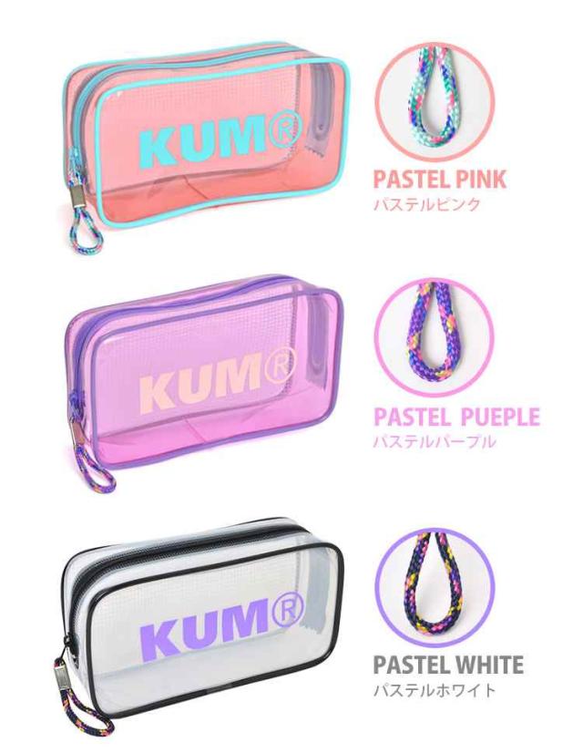 クリアペンケース かわいい 大容量 KUM クム クリアペンケース パステルカラー 筆箱 ビニール かわいい 女の子 透明 オルチャン 透明 クリアペンポーチ 大きめ ペンケース 大きいサイズ 中学生 高校生 大学生 大人 ポーチ 筆箱 ロゴ クリア おしゃれ ファスナー