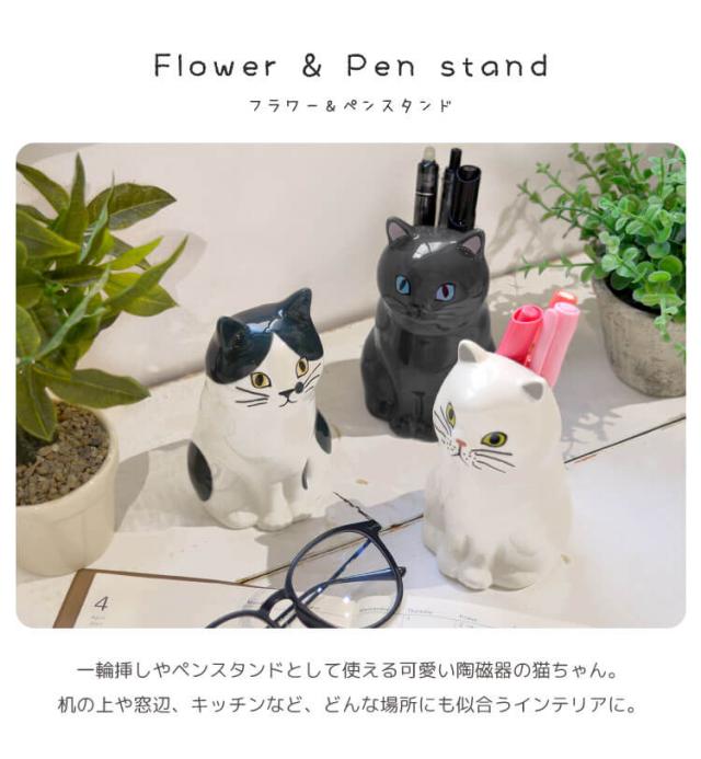 花瓶 一輪挿し 陶器 ペン立て おしゃれ 動物 猫 アニマル ペンスタンド 歯ブラシスタンド フラワーベース インテリア 置物 雑貨 オブジェ ミニ 小さい かわいい 誕生日 プレゼント お礼 箱付き 花びん ねこ ネコ