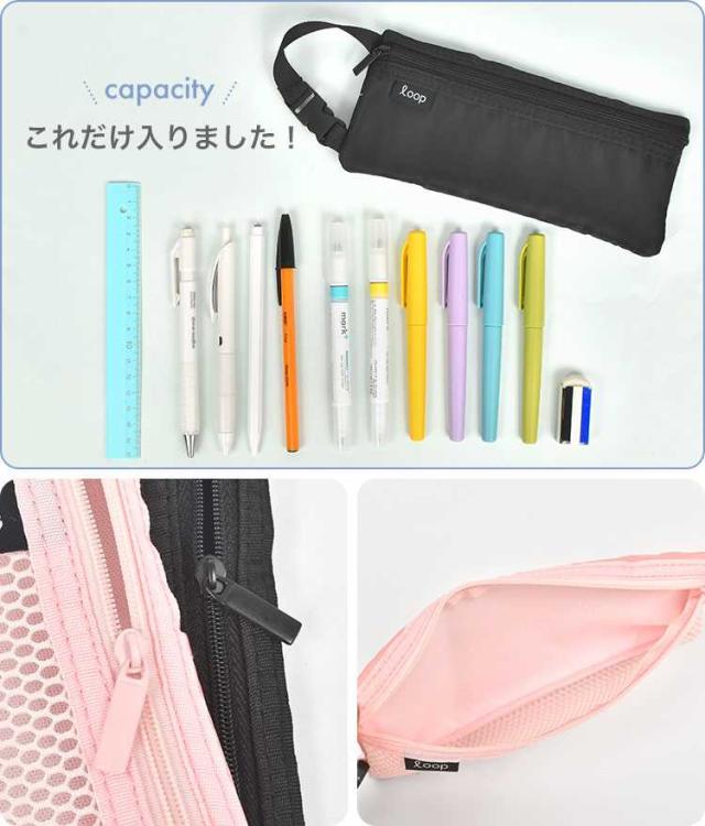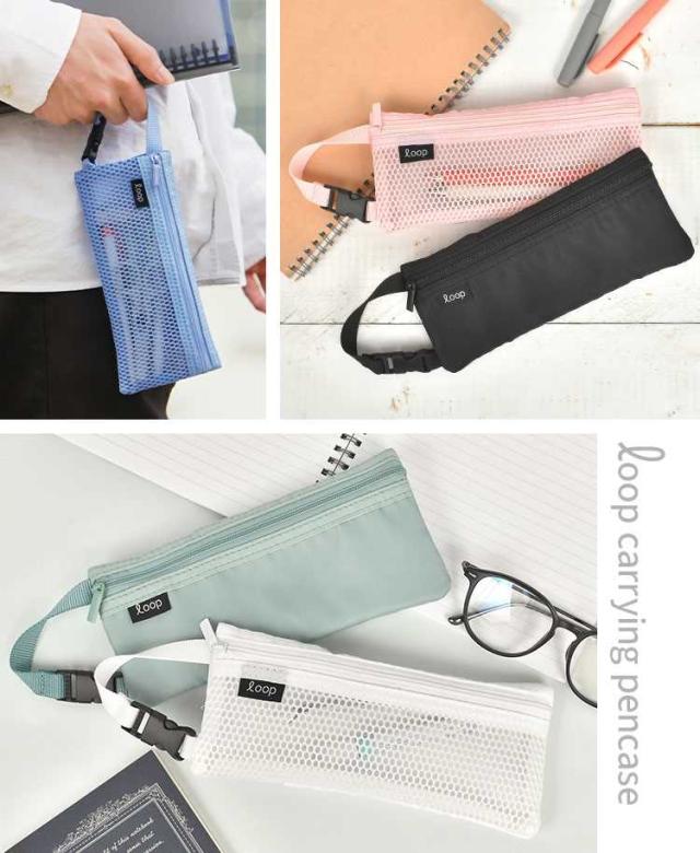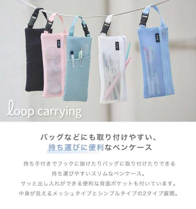 ペンケース おしゃれ 持ち手付き 高校生 大学生 大人 メッシュ 筆箱 シンプル 持ち運び 薄型 レディース メンズ 軽量 コンパクト フラット ループキャリングペンケース 筆入れ 無地 女子 男子 中学生 メッシュペンケース ペンポーチ 機能性 スリム 文房具 黒 青 白 ピンク 緑