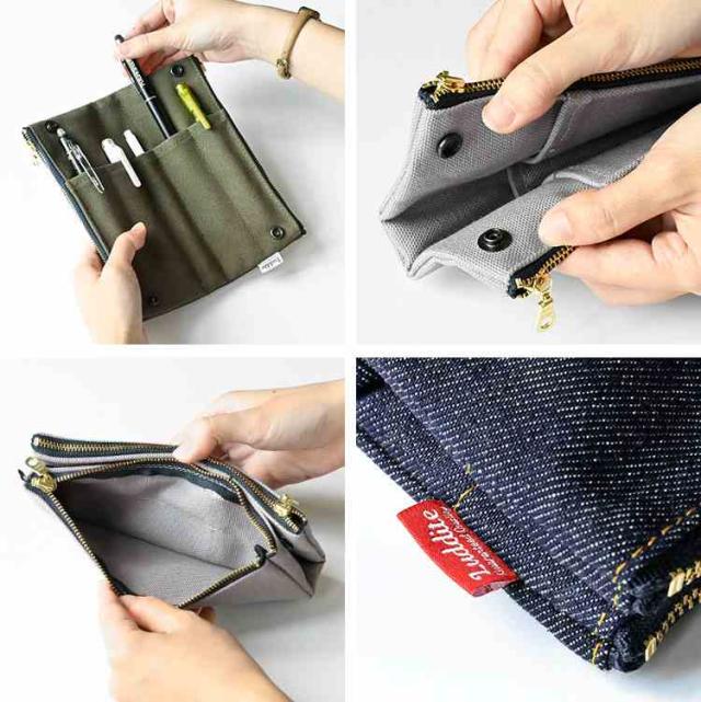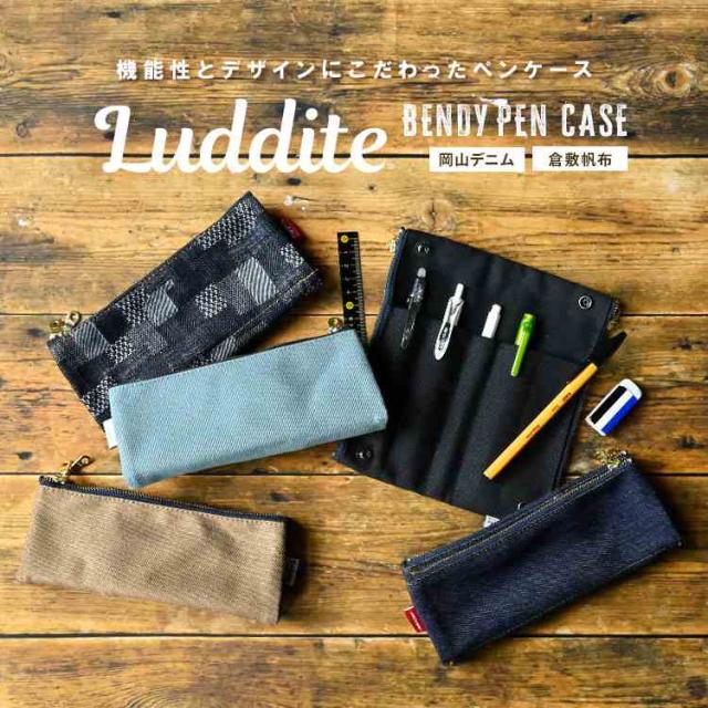ペンケース ベンティケース ラダイト LUDDITE 岡山デニム パッチワーク おしゃれ かっこいい ペントレイ ペンポーチ ふで箱 シャープペン ペン入れ 二つ折り 丈夫 デニム 8号 帆布 無地 シンプル 大容量 中学生 高校生 大人 ブラック カーキ グレー 黒 かっこいい 小物収納