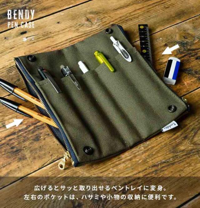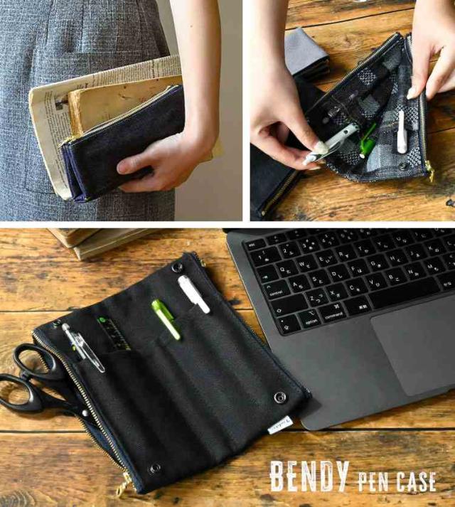 機能とデザインの融合で人気のラダイト 「ベンディペンケース」。開くとペンを1本ずつ収納できるようになっており、よく使うペンの位置をすぐに把握できます。ファスナーは信頼のYKK製でスムーズに開閉可能。素材は岡山デニムと倉敷帆布の2種類の素材からお選びいただけます。