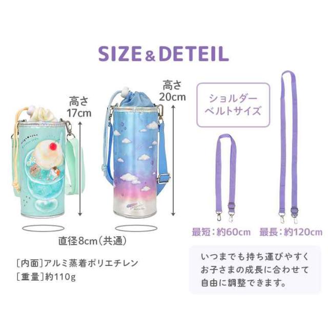 ふんわりタッチでトレンド感のあるデザインがとってもキュート♪ペットボトルやステンレスボトルもスッキリ!通園・通学や運動時の水分補給に最適です。機能性&かわいいデザインでとても便利なボトルケースです♪