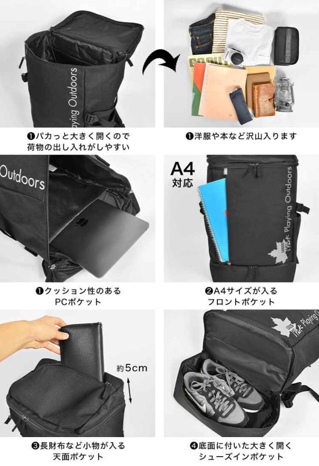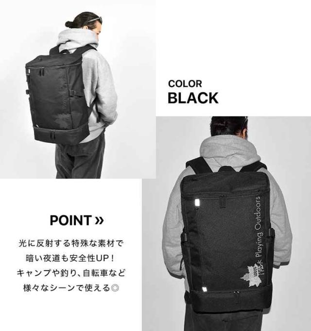 リュック メンズ レディース 大容量 LOGOS ロゴス 通勤 通学 リュックサック ボックスリュック スクエア バックパック バッグ 2層式 リフレクター 反射 丈夫 PC 35L A4 中学生 高校生 大学生 自転車 アウトドア 1泊 2泊 旅行 修学旅行 宿泊 ユニセックス 部活動 ブラック 黒