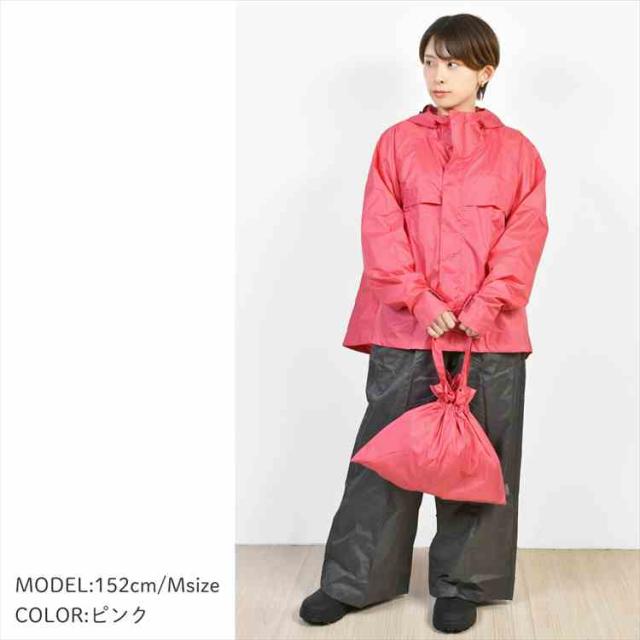 高機能なレインウェア・ワークウェアを手がけるブランド『Makku(マック)』のレディース向けレインスーツ。大人かわいいゆったりとしたワイドシルエットで、厚着の上からも自然に着用ができます。