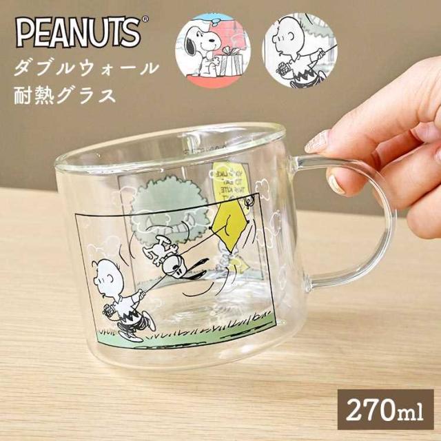 スヌーピー 耐熱 ガラス グラス マグカップ ダブルウォールグラス 取っ手付き かわいい マグ おしゃれ 250ml 軽量 軽い 透明 クリア ガラスマグ グラスマグ ガラスコップ 食器 二重グラス SNOOPY キャラクター チャーリーブラウン ウッドストック 誕生日 プレゼント ギフト