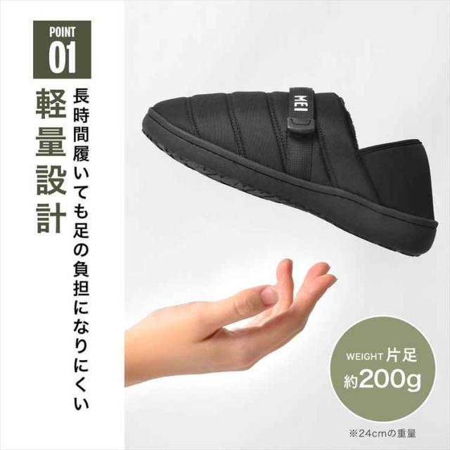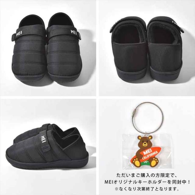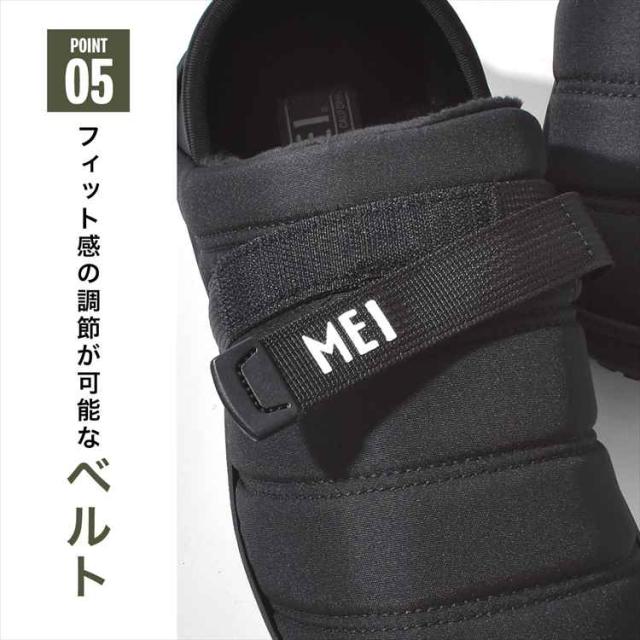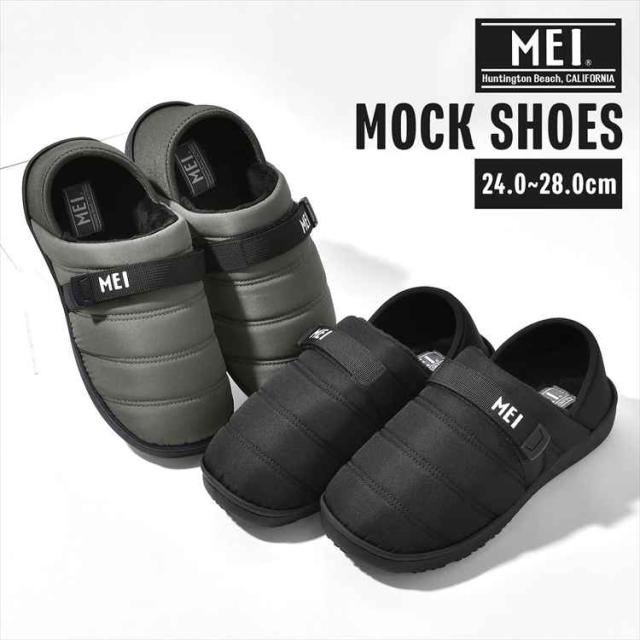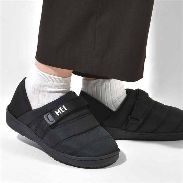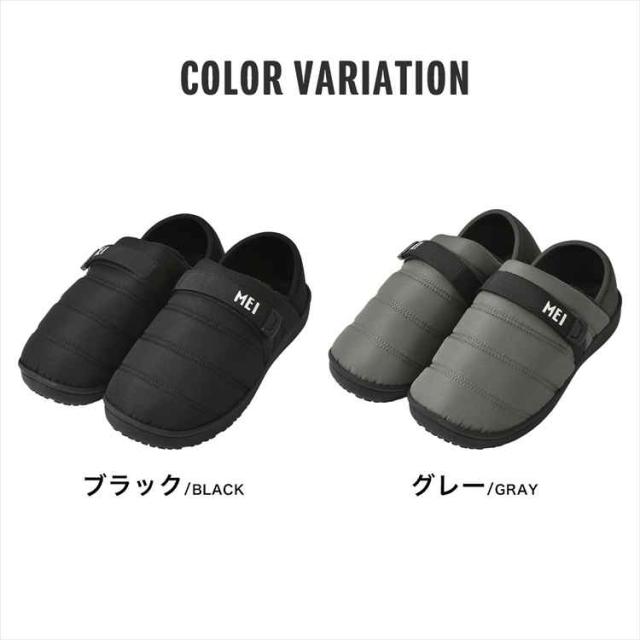 モックシューズ MEI メンズ レディース 24cm 25cm 26cm 27cm 28cm 軽量 スリッパ スリッポン ルームシューズ 室内履き キャンプシューズ おしゃれ もこもこ 暖かい 冬 靴 アウトドア 散歩 仕事 オフィス かかとつき かかとが踏める 歩きやすい キルティング ブラック グレー