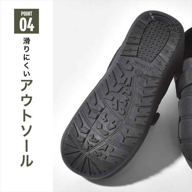 丸みがあり、ボリューム感があるシルエットがとても魅力的です。フィット感の調節が可能な面ファスナーベルト付き。アウトソールにはTPR素材を利用しており、滑りにくく、屈曲性に優れているので歩きやすい◎さらに内側には、もこもこのファーにふかふかのクッションが搭載されており、履き心地は抜群です。