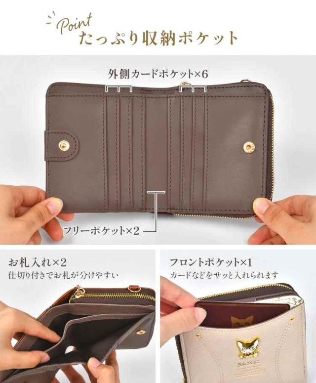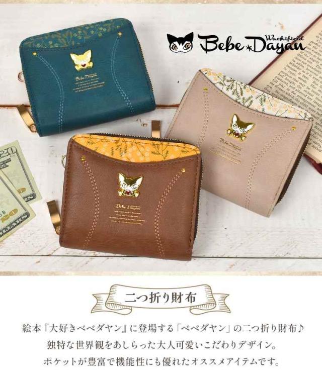 財布 べべダヤン 二つ折り レディース 猫のダヤン 大容量 コンパクト ラウンドファスナー 女性 大人 かわいい おしゃれ キャラクター ミモザ 花柄 猫グッズ わちふぃーるど カード入れ ポケット 収納 多い 使いやすい dカン付き 主婦 ネコ ブラウン ブラウン ベージュ 茶色