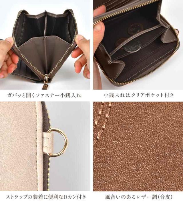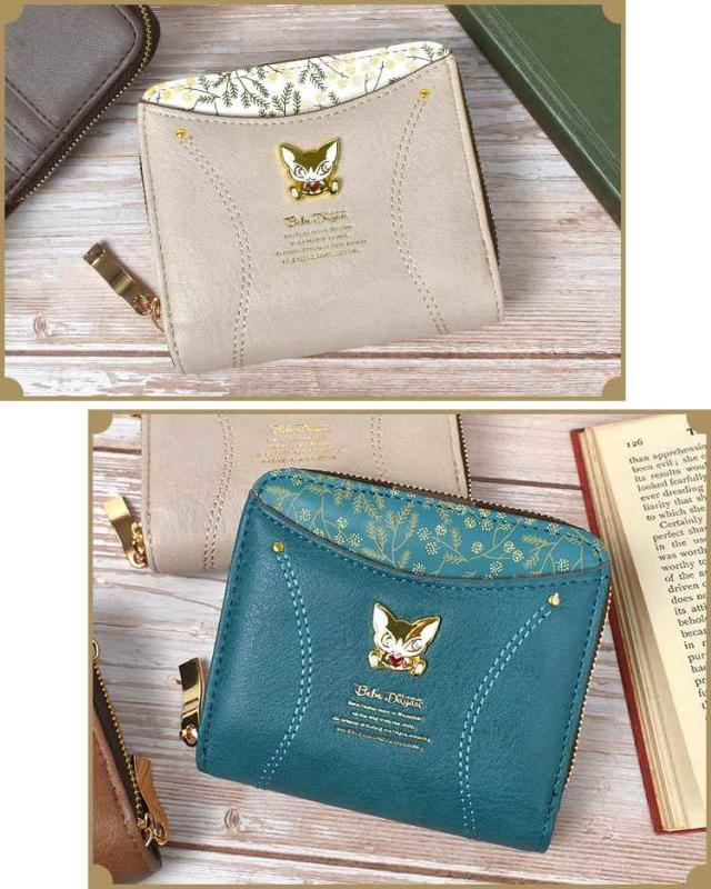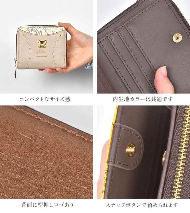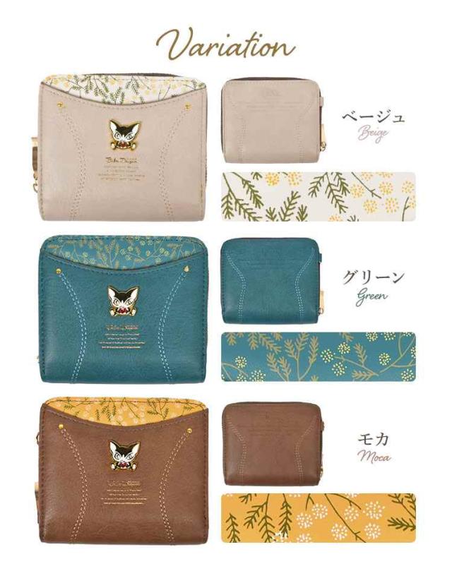 ミモザ柄をあしらったデザインとゴールドのベベダヤンが上品で可愛らしい印象に。ベージュ、グリーン、モカの3色展開でどの色もお洒落♪カードポケットやお札入れなど収納力抜群!機能性にも優れたオススメアイテムです。