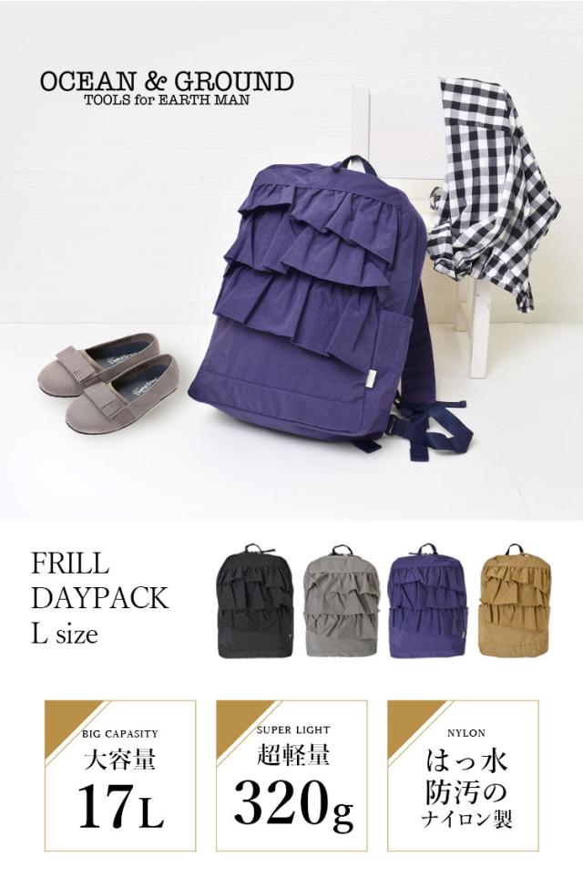 キッズ リュック 女の子 フリル OCEAN&GROUND オーシャンアンドグラウンド 1925104 大きめ 子供 キッズリュック 大容量 通学 遠足 軽量 軽い 林間学校 リュック 小学生 高学年 低学年 リュックサック 14L おしゃれ かわいい ブランド 入学 無地 大人 レディース カジュアル