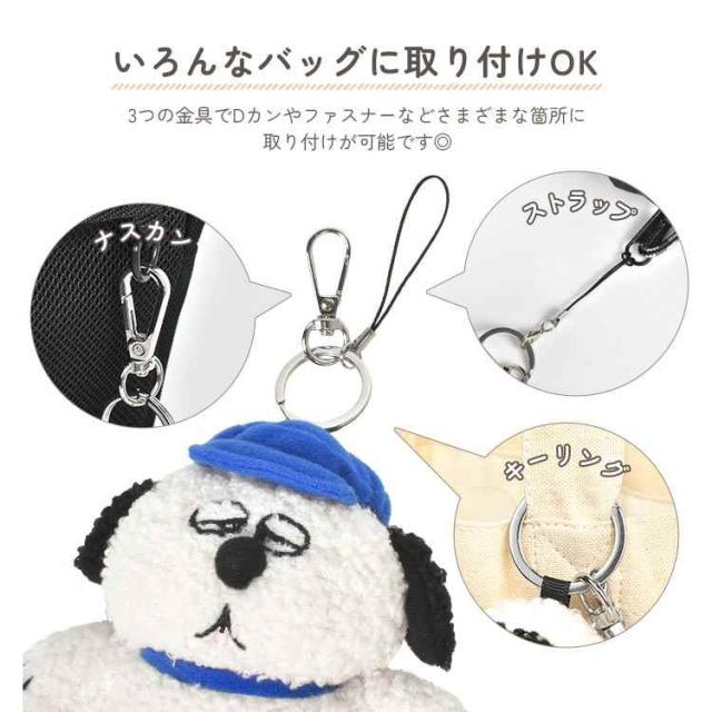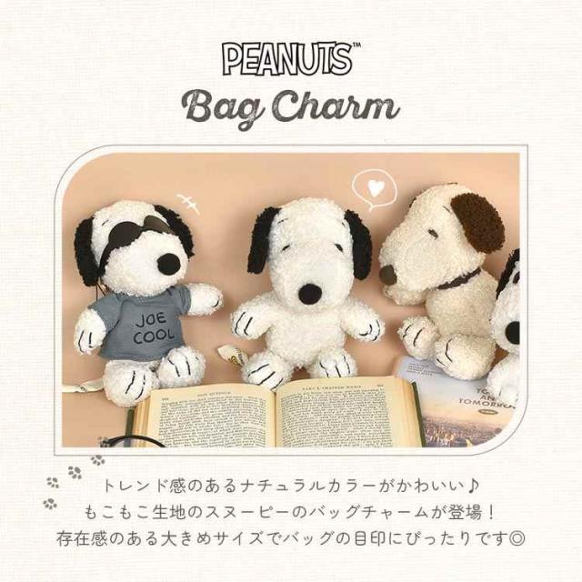 ナチュラルカラーのもこもこ生地でトレンド感があるスヌーピーのバッグチャーム。存在感のある大きめサイズでバッグの目印にぴったりです◎キーリング・ナスカン・ストラップが付いているので、いろんなバッグに取り付けOK!お友達や家族とのお揃いやプレゼントにもおすすめです♪