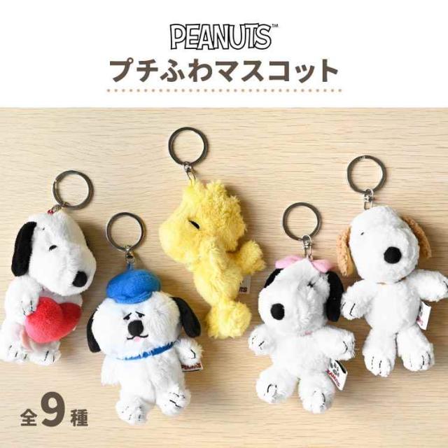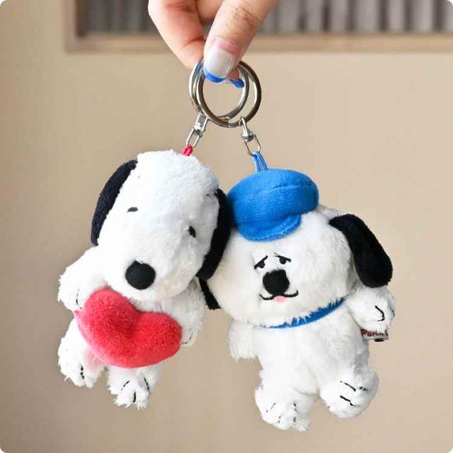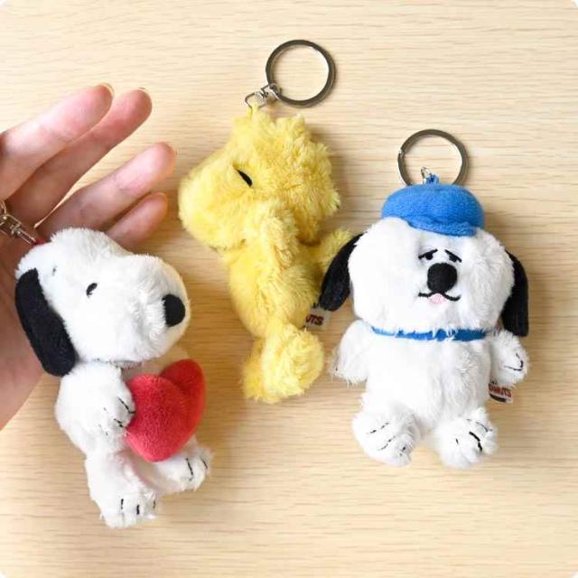 ふわふわ素材が癒される♪スヌーピーのぬいぐるみマスコットが登場!手のひらサイズのマスコットに、鍵の取り付けに便利なキーリングが付いています。バッグやリュックなどのアクセントにもおすすめです◎