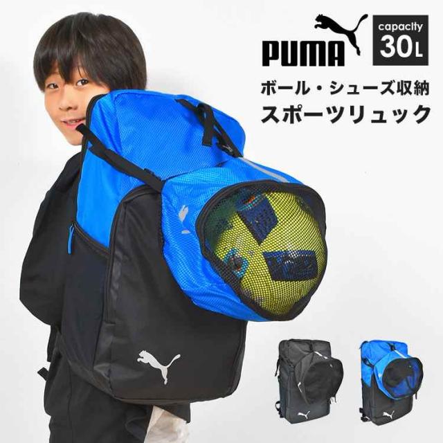 リュック ボール収納 PUMA プーマ 090107 小学生 ジュニア 男の子 子供 キッズ 30L 大容量 ブランド リュックサック バックパック スポーツリュック ボールバッグ ボール入れ サッカーボール バスケットボール シューズ 部活 クラブ 学校 試合 遠征 中学生 高校生 黒 青