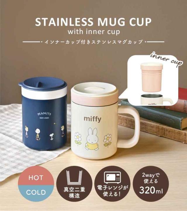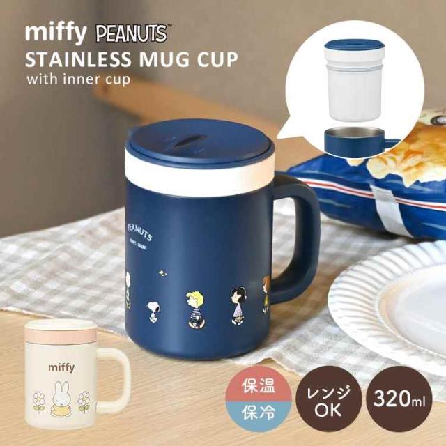 ステンレスマグ スヌーピー ミッフィー 蓋付き レンジ対応 保温 保冷 ステンレス マグカップ タンブラー 真空二重構造 インナーカップ付き 320ml かわいい おしゃれ フタ付 キャラクター グッズ SNOOPY miffy 大容量 シンプル 大人 子供 オフィス 仕事用 保温マグ 保冷マグ