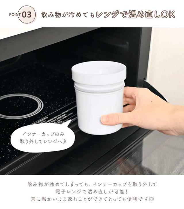 電子レンジで温めができるインナーカップ付きのステンレスマグカップが登場!インナーカップは取り外しが可能なので、インナーカップ付きとマグカップのみの2wayで使えます♪真空断熱2重構造の高い保温・保冷力で飲み物の適温を長時間キープ!冷めてもインナーカップを取り出してレンジで温め直しが可能です◎