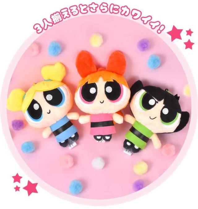 平和のために戦うキュートな3人の女の子「パワーパフガールズ」のぬいぐるみマスコットが登場!ボールチェーンでカバンやリュックに付けやすい◎3人揃えるのもおすすめです♪