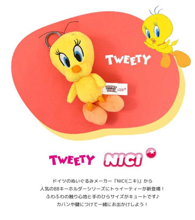 キーホルダー トゥイーティー レディース かわいい ぬいぐるみ NICI ニキ キッズ 女の子 男の子 海外 アニメ キャラクター マスコット ストラップ キーリング 目印 子供 大人 ストラップ ぬい撮り おしゃれ おもちゃ プレゼント ギフト 動物 アニマル 鳥 ひよこ