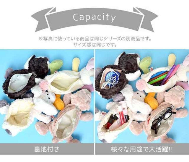 フワフワ、モフモフの可愛いぬいぐるみポーチです。