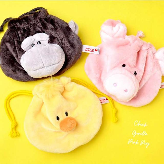 ドイツのぬいぐるみブランドniciからフワフワで可愛いどうぶつの巾着ポーチが登場! ぬいぐるみのような立体的なデザインで 持ってるだけでテンションが上がる とってもかわいいデザインです。