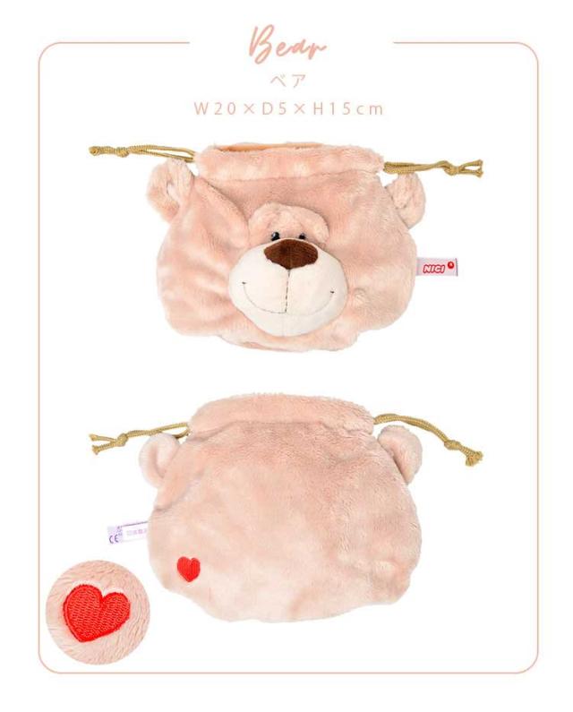 巾着 ポーチ NICI ニキ 動物 アニマル ラブベア ラビット シュナウザー 犬 うさぎ ウサギ くま クマ 小物入れ アクセサリーポーチ 巾着 袋 子供 キッズ レディース 大人 女の子 男の子 通学 通園 通勤 幼稚園 小学生 中学生 高校生 粗品 景品 おもちゃ 贈り物 誕生日