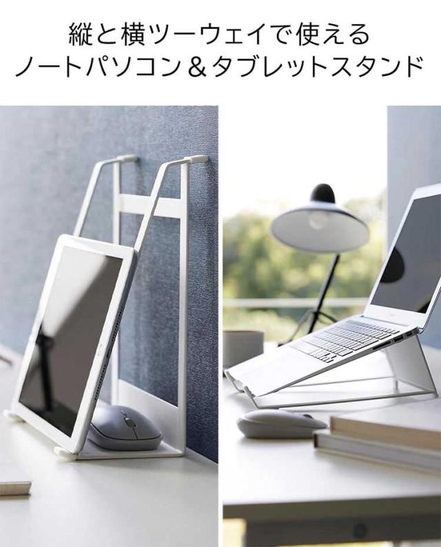 ツーウェイノートパソコン&タブレットスタンド 山崎実業 タワー PCスタンド パソコン タブレット スタンド tower 縦置き 横置き 収納 おしゃれ スタイリッシュ シンプル 無地 ホワイト ブラック 1626 1627 デスクワーク 在宅 便利 グッズ PC台 斜め デバイス収納 姿勢改善