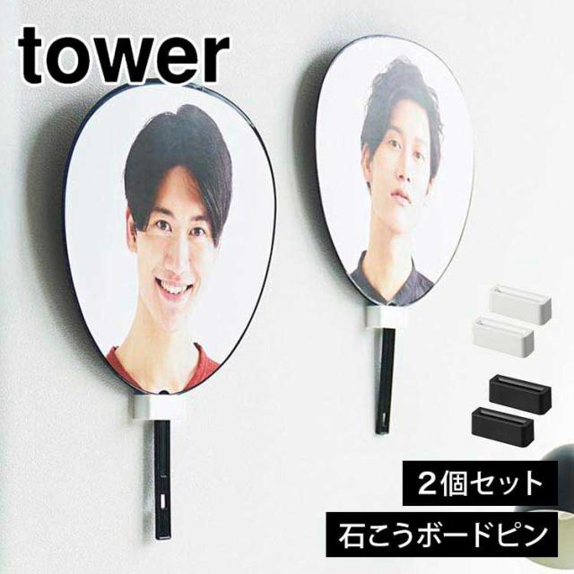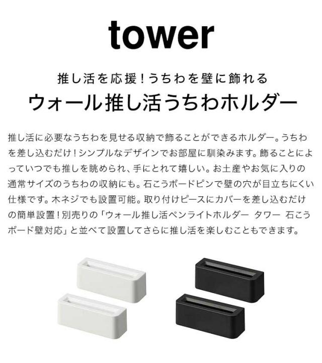 山崎実業 ウォール推し活うちわホルダー 石こうボード壁対応 tower 1953 1954 うちわ収納 うちわスタンド 壁掛け おしゃれ 壁面収納 収納ホルダー 団扇 推し グッズ収納 飾る 白 黒インテリア うちわ置き コンパクト シンプル スリム 石膏ボードピン 木ネジ 浮かせる収納