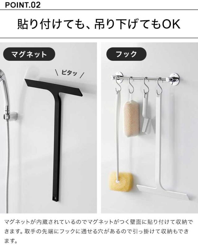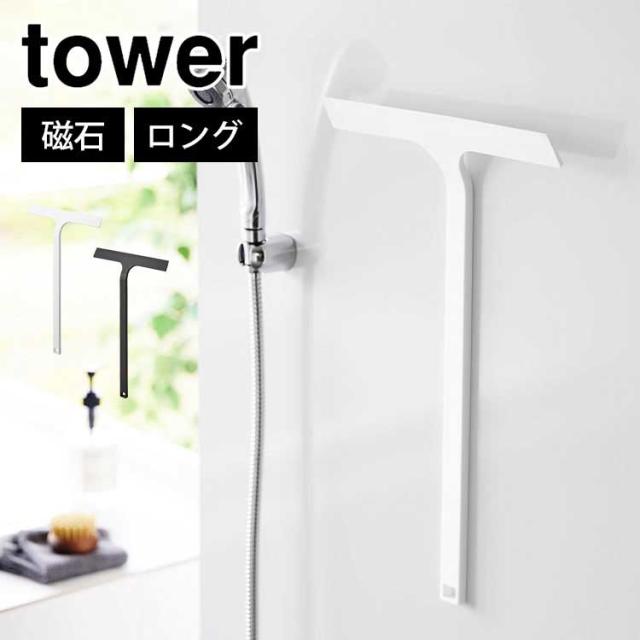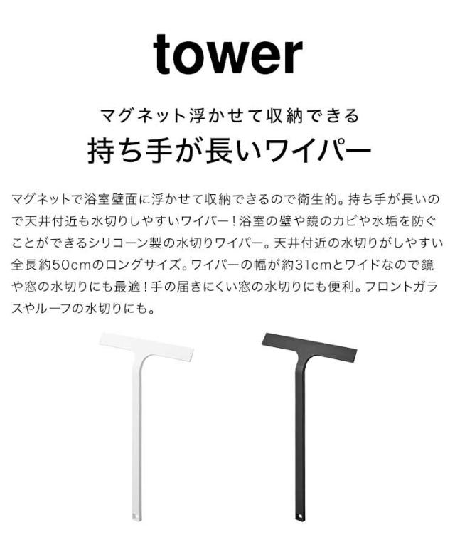 山崎実業 マグネット水切りワイパー タワー ロング tower 2005 2006 磁石 スキージー 掃除用具 持ち手 長い 50cm スクイージー 大きめ 長め お風呂場 浴室 バスルーム 壁 スクイジー 窓掃除 車 フロントガラス 鏡 天井付近 届く ワイドサイズ 幅 30cm 片手 衛生的 便利 白 黒