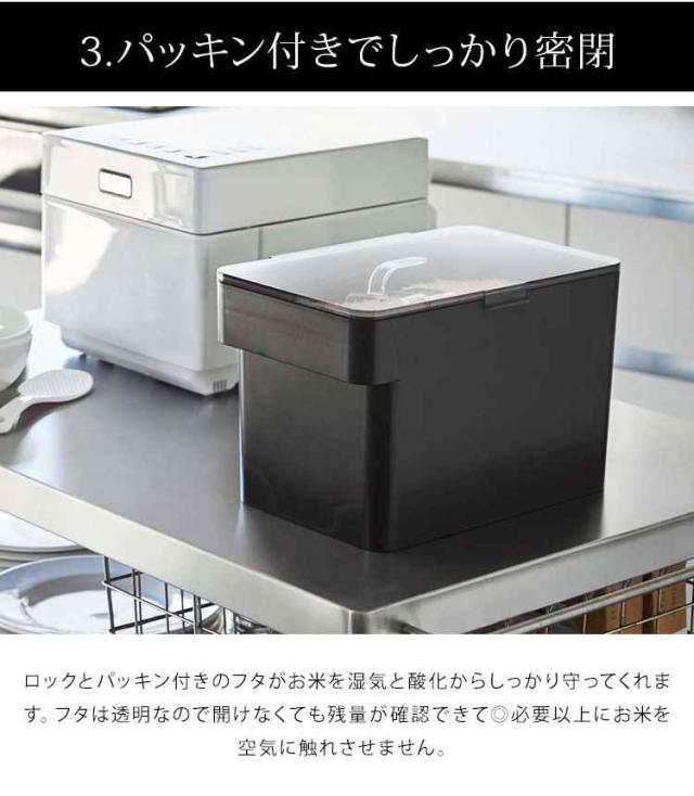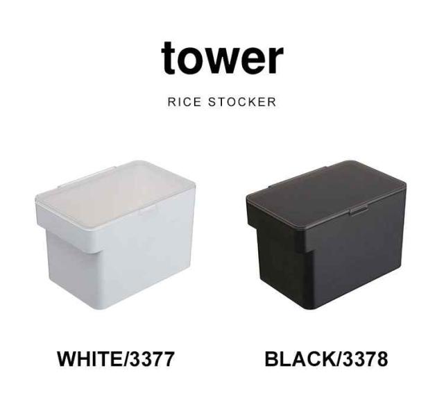 米びつ 5kg 米びつ 冷蔵庫 おしゃれ こめびつ 山崎実業 シンプル コンパクト 米櫃 ライスストッカー タワー tower 湿気防止 酸化防止 計量カップ付き シンク下 ホワイト ブラック ライスボックス 密閉 モノトーン スタイリッシュ 3377 3378 yamazaki キッチン収納 白 黒