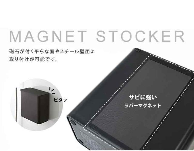 | 使用上のご注意 | ●製品本来の用途以外でのご使用はお止めください。 ●マグネットを取り付ける際、強くこすりつけたり、付けたまま長時間放置しすぎますと、接着面にマグネットの色やキズがつく原因となりますので定期的に接着面を変えてください。 ●ものを収納したまま移動させないでください。 ●耐荷重以上の物は絶対に収納しないでください。耐荷重制限内でも、大きな衝撃により製品が落下し、ケガや破損の原因になることがありますのでご注意ください。 ※その他付属の取り扱い説明書をよく読んでからご使用ください |