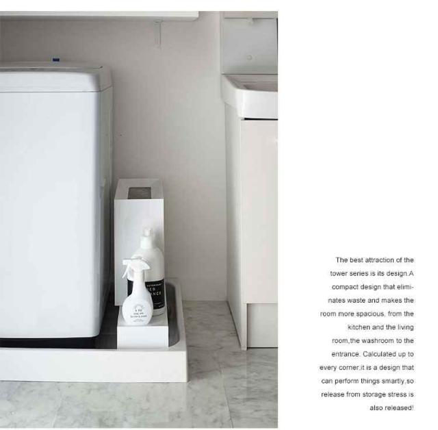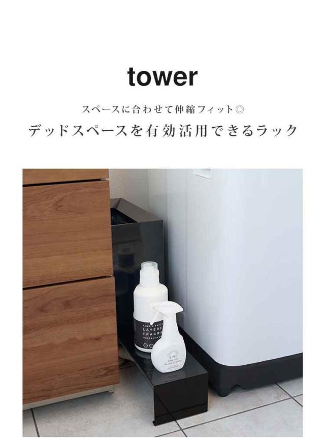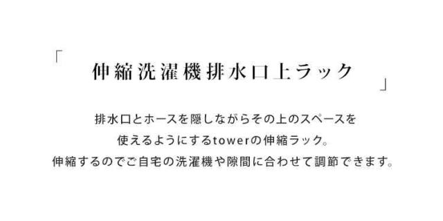 洗濯機 隙間 収納ラック タワー tower 伸縮 排水口カバー ホース 目隠し 収納 すき間収納 スリム 幅調整 山崎実業 置き場 新生活 北欧 おしゃれ シンプル スタイリッシュ ホワイト ブラック 白 黒 防水パン 置き台 脱衣所 洗面所 4338 4339 排水口ラック 便利 送料無料