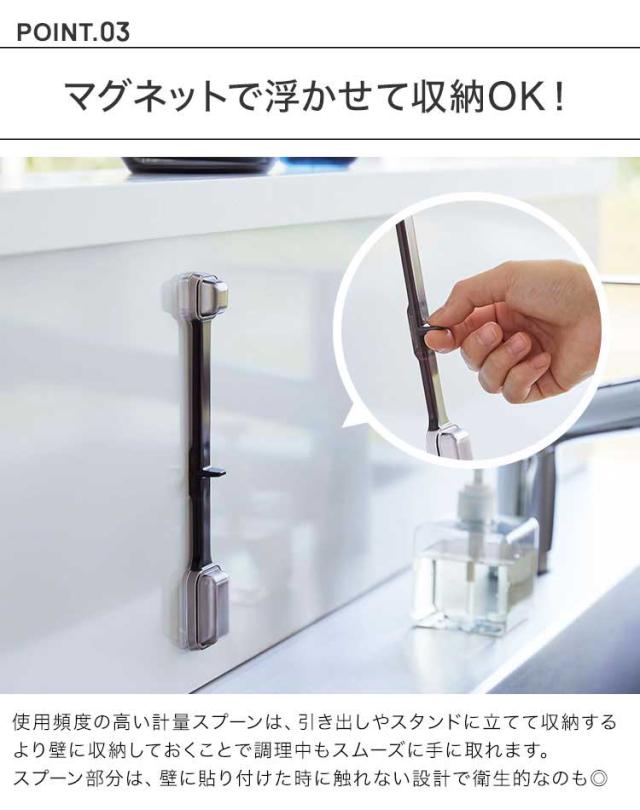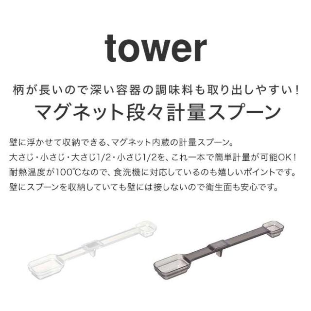 マグネット段々計量スプーン 山崎実業 タワー 計量スプーン 食洗機対応 tower メジャースプーン マグネット 計量 スプーン 磁石 大さじ 小さじ 一体型 持ち手付き 浮かせる 壁面 収納 調理器具 シンプル スタイリッシュ おしゃれ ホワイト ブラック 6923 6924 耐熱 yamazaki