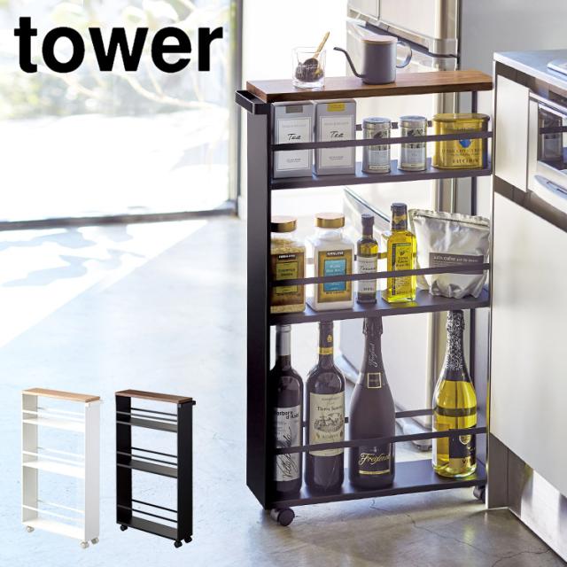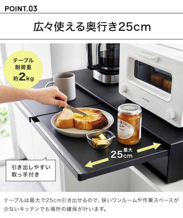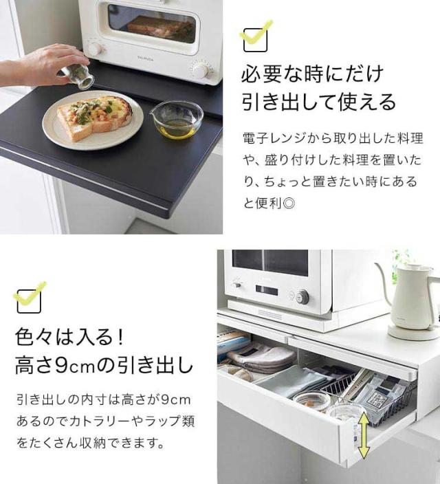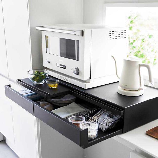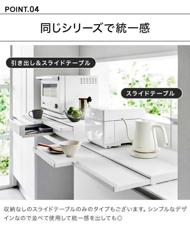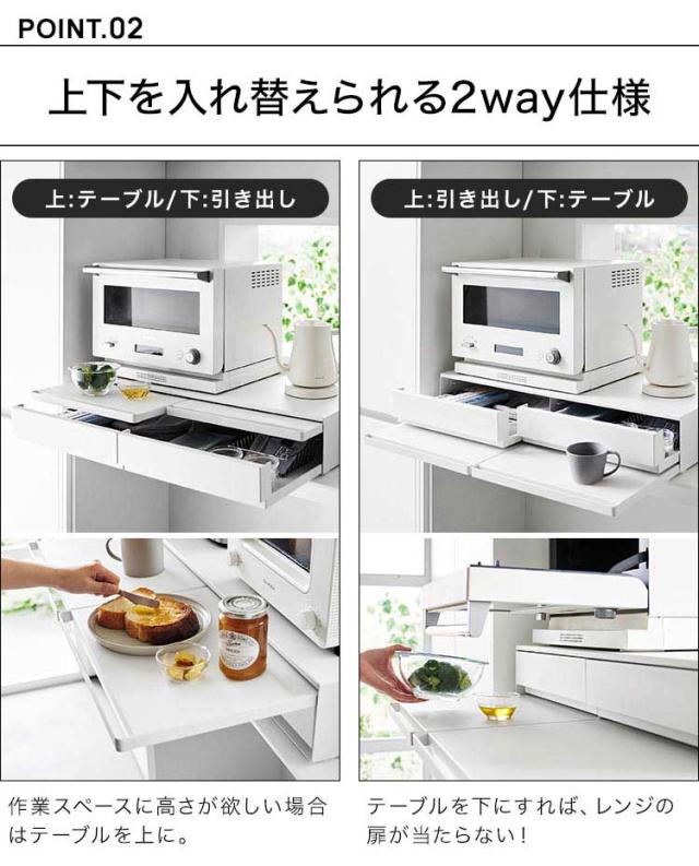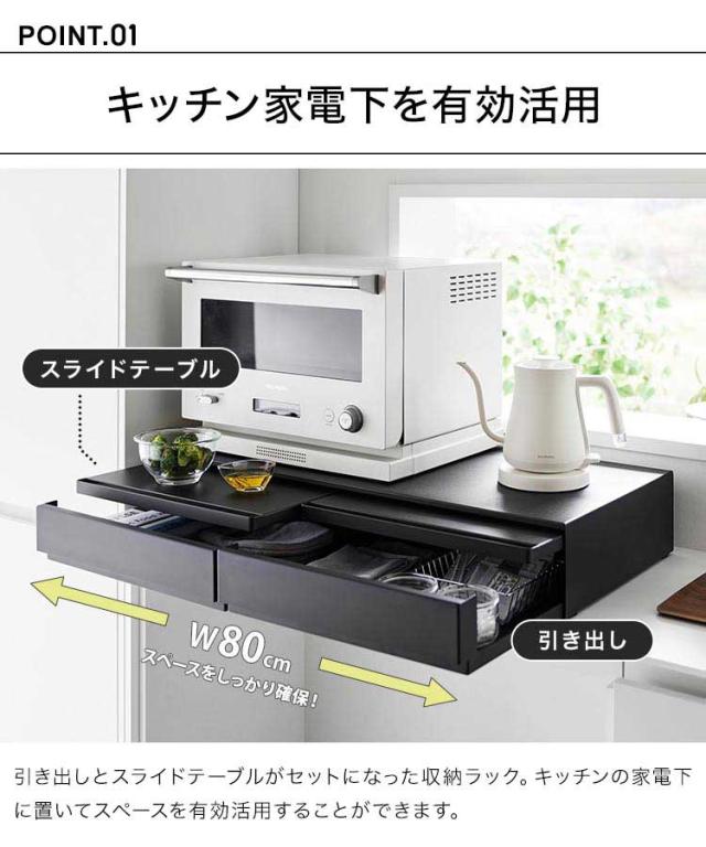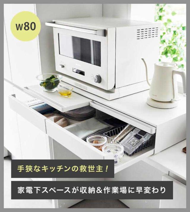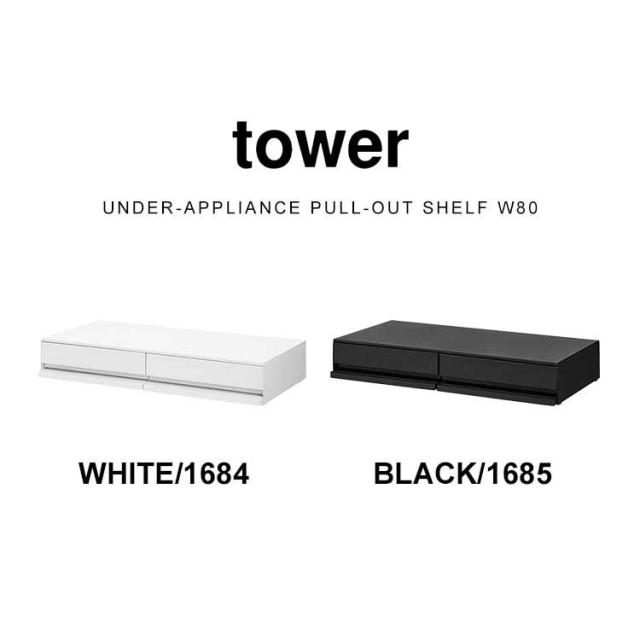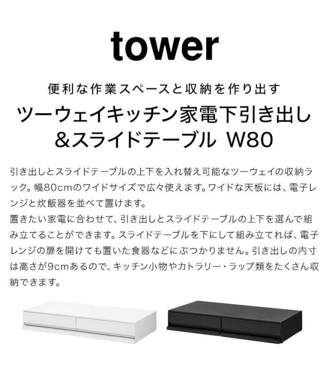 ツーウェイキッチン家電下引き出し&スライドテーブル 山崎実業 タワー W80 tower レンジ下 収納 レンジ台 キッチン収納 おしゃれ 大容量 2way スライド トレー 幅80cm おしゃれ シンプル ホワイト ブラック 1697 1698 新生活 作業台 2段 炊飯器 トースター