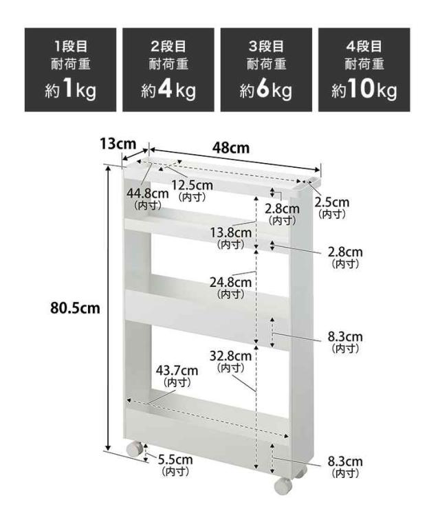 ![]() ![]() ![]() ![]() ![]() ![]() ![]() ![]() ![]() ![]() ![]() ![]() ![]() ![]() Details 【キャスター付きスリムワゴン 4段】 幅13cmの隙間で使えるハンドル付きのスリムワゴン4段!隙間に収まり見た目もスッキリ。ハンドルや回転するキャスター付きなので移動や掃除がしやすいです。キッチン小物、ジャムや雑貨などの小さい物からペットボトルや瓶類などの大きい物まで、冷蔵庫横などの省スペースに収納できます。ランドリルームでは、洗面台周りの小物から洗濯洗剤などの大きい物まで、洗濯機や洗面台横の隙間に収納できます。 ブランド名 tower / タワー JAN 4903208018067 / 4903208018074 品番 1806 / 1807 サイズ [ 外寸 ] W13×D48×H80.5cm (キャスター含む) [ 内寸 ] 1段:W12.5×D44.8×H2.8cm 2段:W12.5×D44.8×H13.8cm 3段:W12.5×D44.8×H24.8cm 4段:W12.5×D44.8×H32.8cm 耐荷重 1段:1kg 2段:4kg 3段:6kg 4段:10kg 重量 約5.8kg 素材 本体:スチール(粉体塗装) キャスター:ナイロン 付属品 スパナ 備考 組立式 生産国 台湾 ご注意 ※表記サイズより、多少の誤差があることがございます。 ※商品の画像はできる限り実物に近づけるよう配慮しておりますが、お使いのモニターやご覧になる環境によりましてはカラーの見え方に差が出る場合がございます。ご了承くださいませ。 関連キーワード 山崎実業 キャスター付きスリムワゴン 4段 タワー 1806 1807 tower 隙間収納 15cm キャスター付き 洗面所 冷蔵庫 洗面台 キッチンワゴン すき間 収納 ランドリー ラック 薄型 ストック収納 白 黒 ホワイト ブラック 洗濯機 横 スリムラック 幅13cm 引き出し 公式 キッチンラック ストッカー シンプル すき間収納 省スペース 薄い すきま コンパクト スリム ペットボトル 収納 棚 パントリー 調味料 おしゃれ 整理 脱衣所 新生活 yamazaki 山実 やまじつ towerシリーズ インテリアブランド 女性 男性 誕生日 プレゼント クリスマス おしゃれ お洒落 シンプル スタイリッシュ 無地 モノトーン スマート マンション アパート 一人暮らし ひとり暮らし 1人暮らし 二人暮らし ふたり暮らし 2人暮らし ファミリー 家族 一戸建て 戸建 賃貸 スタイリッシュ キャスター付きワゴン 収納ワゴン ランドリーワゴン 4段ワゴン 洗濯機横収納 冷蔵庫横収納 ハンドル付きワゴン スリム収納ラック ペットボトル収納 一升瓶収納 掃除道具収納 キッチン収納 スリムキャスターラック | |||||||||||||