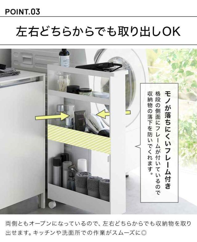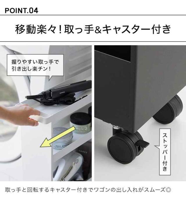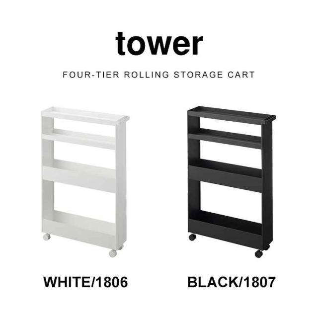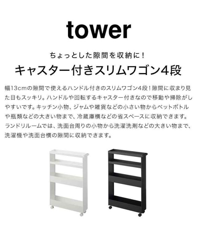 山崎実業 キャスター付きスリムワゴン 4段 タワー 1806 1807 tower 隙間収納 15cm キャスター付き 洗面所 冷蔵庫 洗面台 キッチンワゴン すき間 収納 ランドリー ラック 薄型 ストック収納 白 黒 ホワイト ブラック 洗濯機 横 スリムラック 幅13cm 引き出し 公式