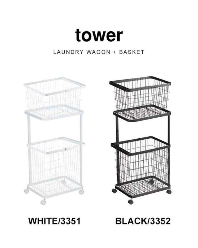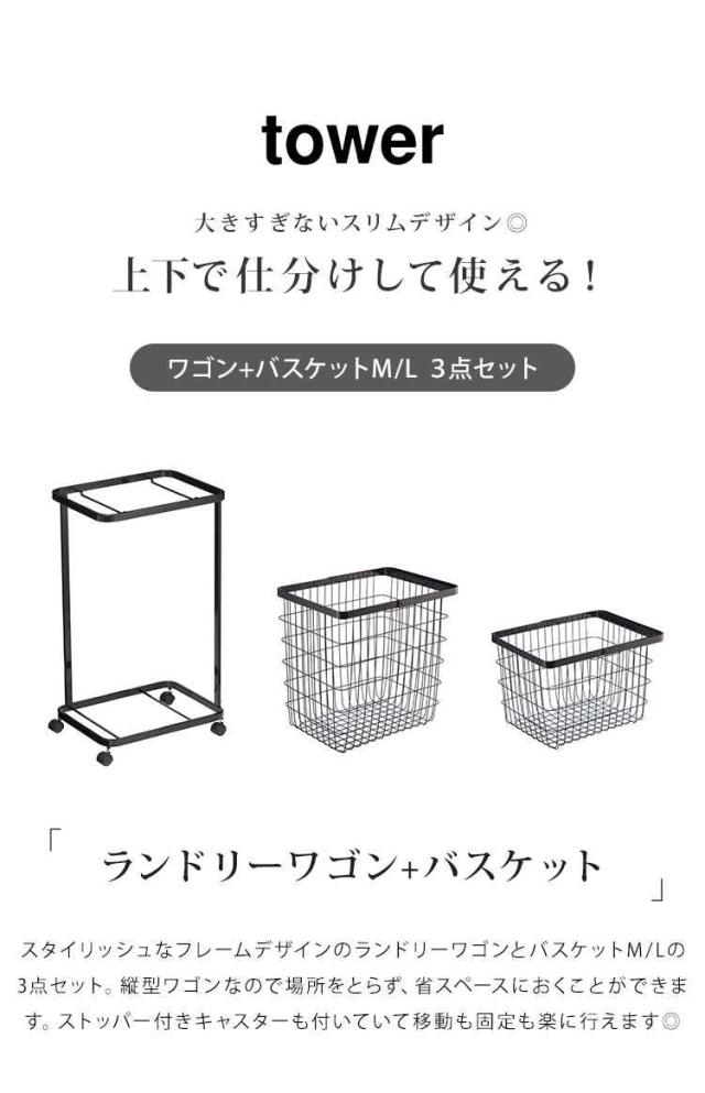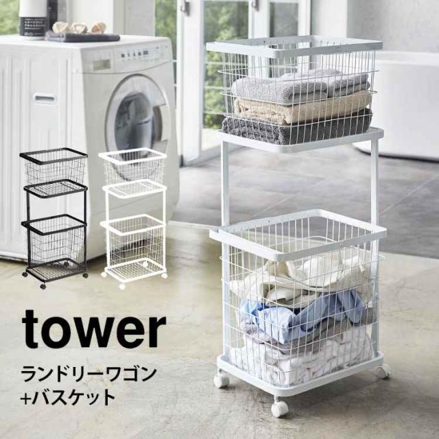 ランドリーワゴン バスケット セット 山崎実業 tower タワー ランドリーバスケット 3点セット キャスター付き 洗濯カゴ 洗濯かご 収納 おしゃれ シンプル ホワイト ブラック 白 黒 スタイリッシュ 新生活 大容量 脱衣カゴ 3351 3352 脱衣所 洗濯物入れ モノトーン 送料無料