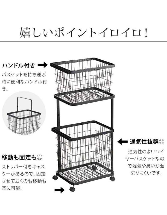 | サイズ | ■セット全体:約高さ93.5×幅40×奥行29cm ・ワゴン:約高さ69.5×幅40×奥行29cm ・バスケット[M]:約高さ26.5×幅41×奥行30cm ・バスケット[L]:約高さ39×幅41×奥行30cm |