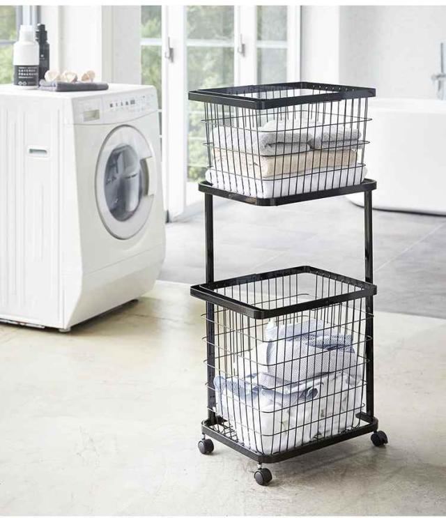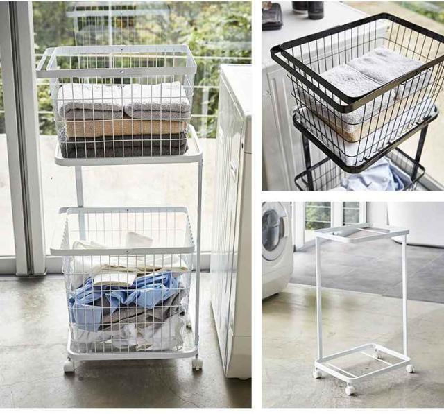 スタイリッシュなフレームデザインのランドリーワゴンとバスケットM/Lの3点セット。