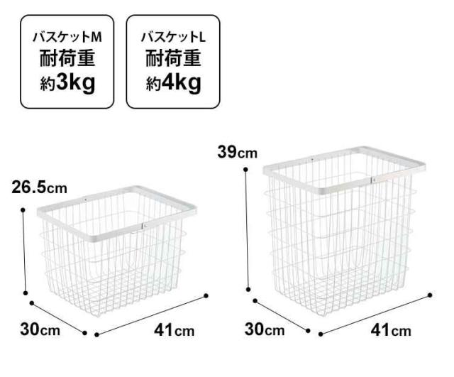| 耐荷重 | ・ワゴン:約6kg(1段につき) ・バスケット[M]:約3kg ・バスケット[L]:約4kg |