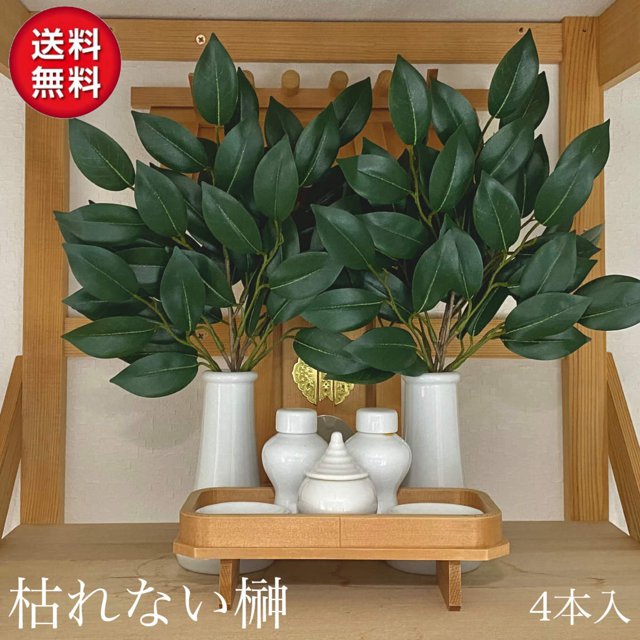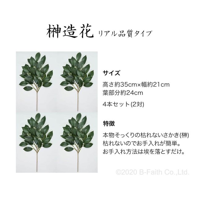 榊 (さかき・サカキ) 造花 リアル品質タイプ 二対 (4個セット) 枯れないさかき 神棚
