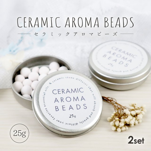セラミック アロマビーズ 約25g×2個セットアロマストーン 缶入り かわいい おしゃれ 日本製 石膏 素焼き ホワイト アロマディフューザー 直径シンプル アロマ ストーン プレート 石 プレゼント 精油 受け皿 エッセンシャルオイル 皿 車にも 国産
