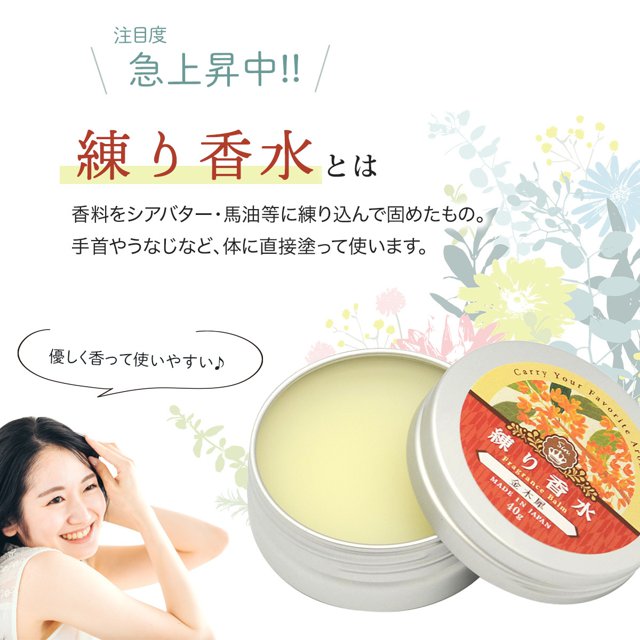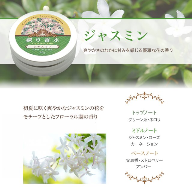 練り香水 40g ジャスミン アロマ 練香水 香水 フレグランス フレグランスバーム ハンドクリーム オイル クリーム フェイスクリーム ボディクリーム 天然 日本製 国産 保湿 保湿クリーム