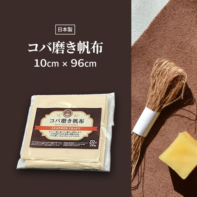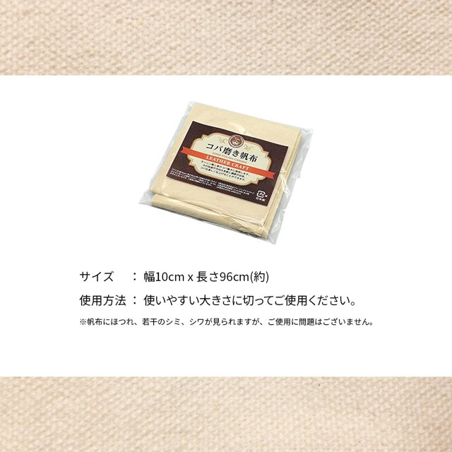 日本製 皮革用 コバ磨き布 帆布 幅10cm x 長さ96cm(約) レザークラフト レザー 革 皮 手縫い コバ塗り コバ仕上げ剤 コバ磨き 仕上げ剤