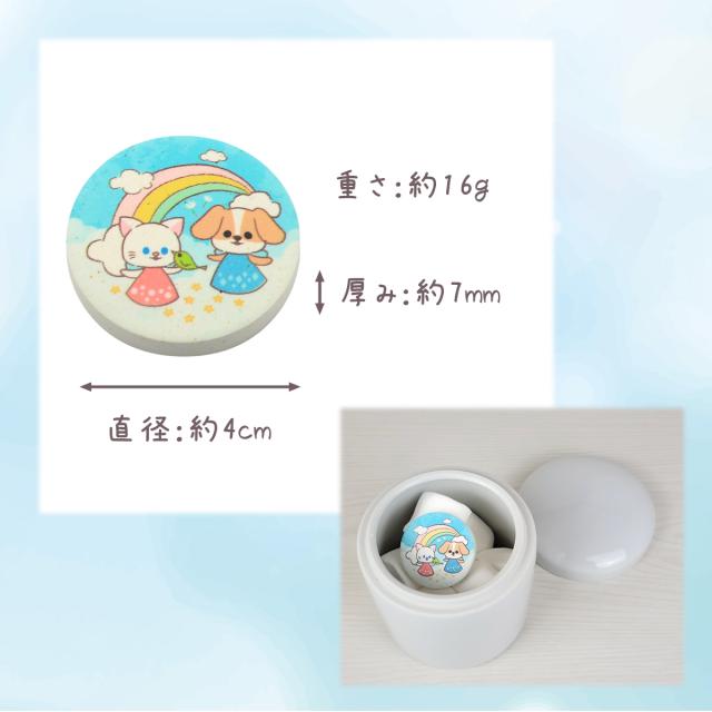 珪藻土でできたペットの骨壺用乾燥剤です。 かわいくデザインされた乾燥剤に祈りを込めて、大切なペットに想いを馳せてください。アスベスト検査済み。