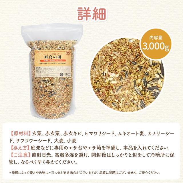 野鳥の餌 3000g まき餌 えさ ごはん 食事 ミックス ハト すずめ ウグイス 小鳥 バードウォッチング バードフィーダー シジュウカラ