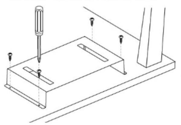 木ネジをねじ込む場所にあらかじめキリなどで下穴を4箇所あけて、テーブルの裏に製品を付属のネジ4つでしっかり固定してご使用ください。