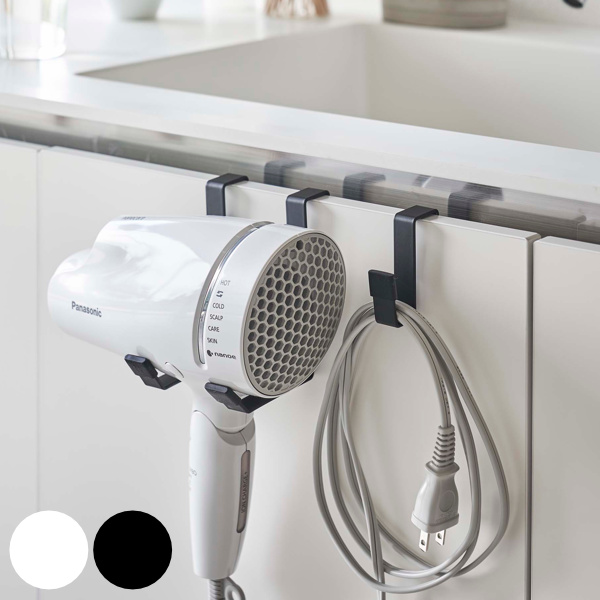 収納場所に困りがちなドライヤーを収納できるドライヤーハンガーです。無駄のないシンプルなデザインで主張しすぎず、洗面周りがすっきりと片付きます。